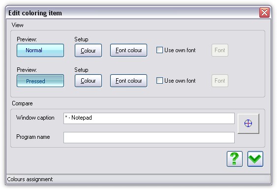 TaskBow in Windows XP without visual style. Method of group opening - click in button of right side.![]() TaskBow in Windows XP with standart blue visual style. Text in task buttons with word wrapping. ![]() TaskBow in Windows XP with standart olive visual style. Windows task panel has size in two lines, but TaskBow uses own button size here. So, we see three lines. ![]() TaskBow in Windows XP without visual style. Method of group opening - mouse pointer above taskbar. ![]() TaskBow in Windows XP without visual style. Three in two lines. ![]() TaskBow in Windows XP without visual style. Two in two lines. Light rose highlighting. ![]() Main TaskBow window. ![]() Colour setup dialog. Here you can manage list of colours assignment. ![]() Colour setup dialog for a task. ![]() TaskBow in Windows XP with standart olive visual style. Gigantic art font. ![]() TaskBow in Windows XP without visual style. Two lines task panel. Big font and word wrapping. ![]() TaskBow in Windows XP with standart silver visual style. Art font. ![]() |