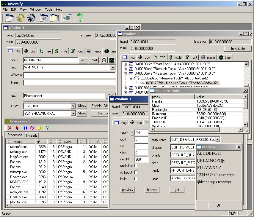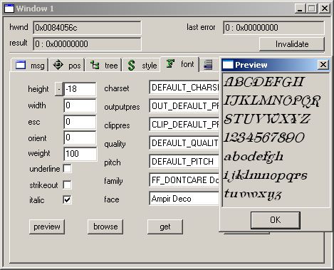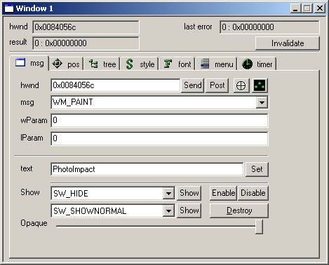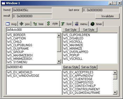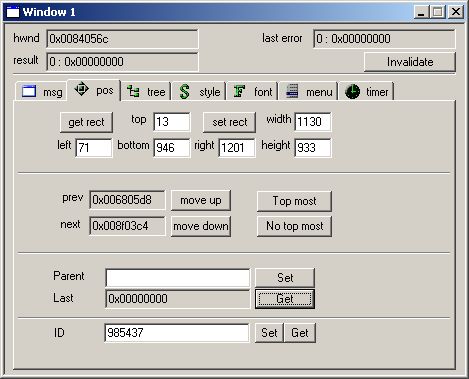 To get parent window, press button get, and you will see handle of parent window in "Last" edit box. To change parent window, write it down in editbox "Parent" and then press "Set" button.