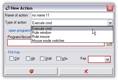 From drop-down list select actions - Execute cmd. It means, than your new action will execute command line.