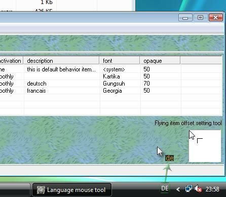 When you move mouse over windows with one of keyboard layout, it will be highlighted by Flying Indicator. Here you see Deutsch language is selected.