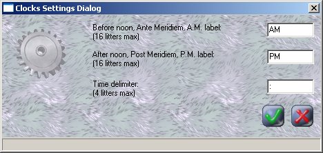 Here you can set special options of Clock Layer. AM, PM and Time Delimiter.