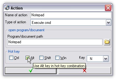 Select hot-key combinaton for your action and then press Ok.