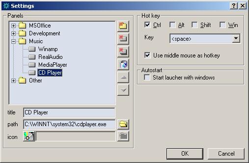 This settings dialog can be opened by main menu. By this dialog you can set settings for panels and buttons: